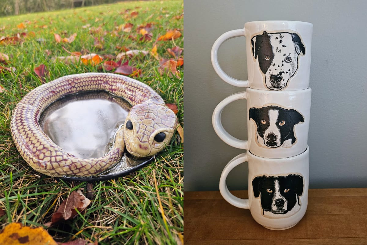 The focus on animal pieces stemmed from Liza making a mug with a portrait of her own dog, Koopa, and realizing how much joy she felt using that mug for her daily coffee. She decided to try selling custom pieces like that, and her business took off.
