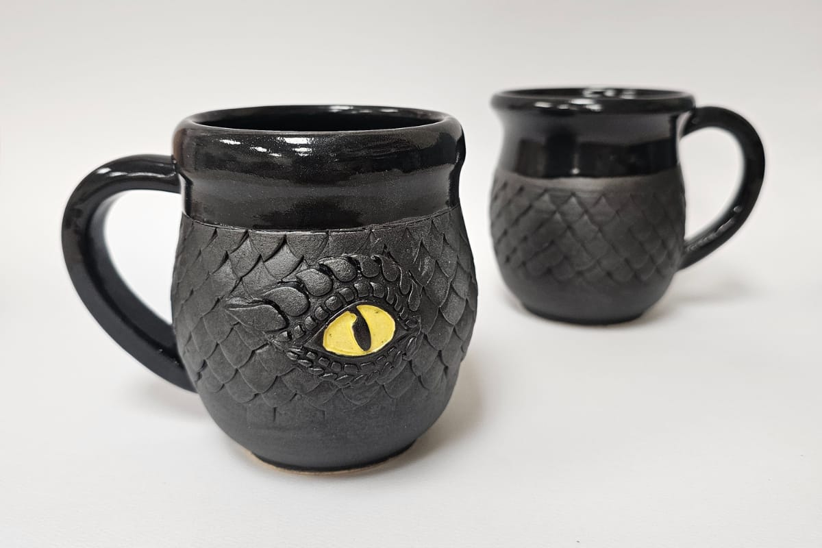 Liza’s dragon-eye mug was the first piece that made her feel like she had found her creative voice. Having created that piece intentionally and thought carefully about what she wanted it to look like, the result far surpassed her expectations. This piece also gave her the confidence to keep going and launch herself into her art.