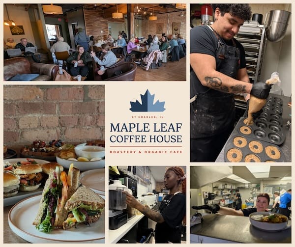 If you haven't been to Maple Leaf Coffee House along the Fox River in downtown St. Charles, here's what you're missing: a full-fledged café where the coffee is roasted in-house, the syrups are made from scratch, the baked goods come out of their own kitchen, and the breakfast and lunch menus are built around flavorful, organic ingredients.
