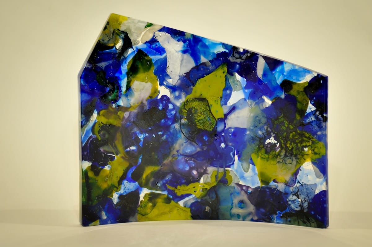 Avid paddlers who have kayaked on five continents, they often draw inspiration from the colors and abstract imagery of their travels. Ljung’s passion for color and design drives their experimentation, while her husband has mastered the technical aspects of cold-working and kiln-firing.