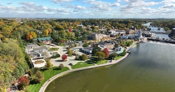 The site — which has been vacant since 2019 — occupies a key stretch of the east bank of the Fox River. Planners describe it as a focal point linking the recreational open space of Pottawatomie Park to the north with Main Street, City Hall, and the historic downtown district to the south.