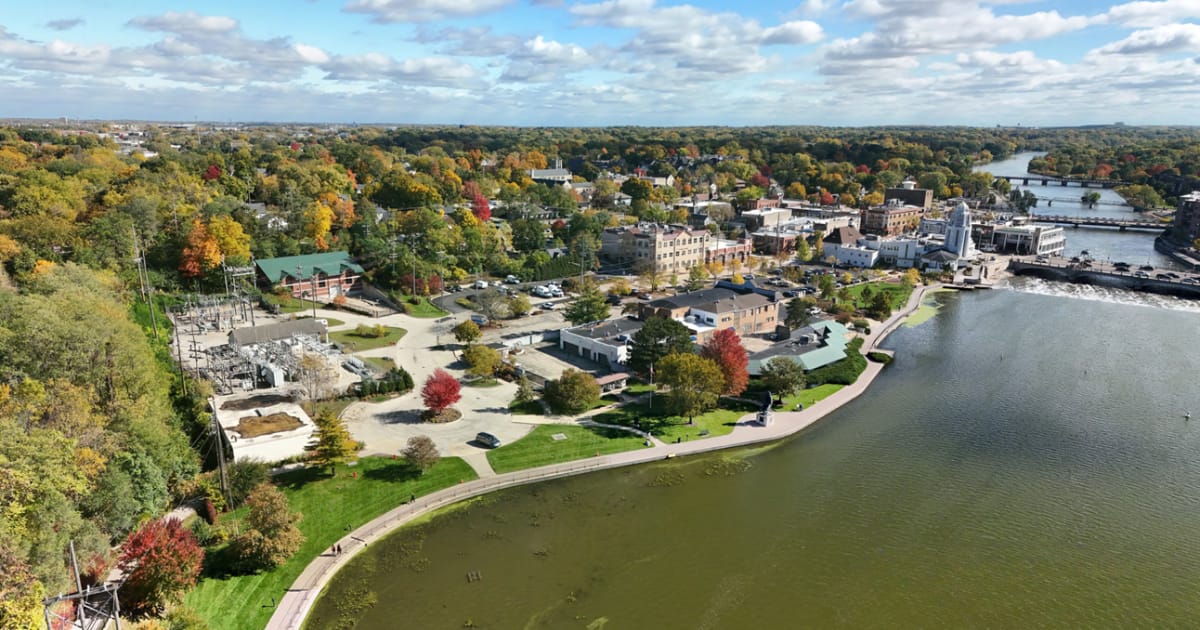 The site — which has been vacant since the new $24.6 million station opened in 2019 — occupies a key stretch of the east bank of the Fox River. Planners describe it as a focal point linking the recreational open space of Pottawatomie Park to the north with Main Street, City Hall, and the historic downtown to the south.